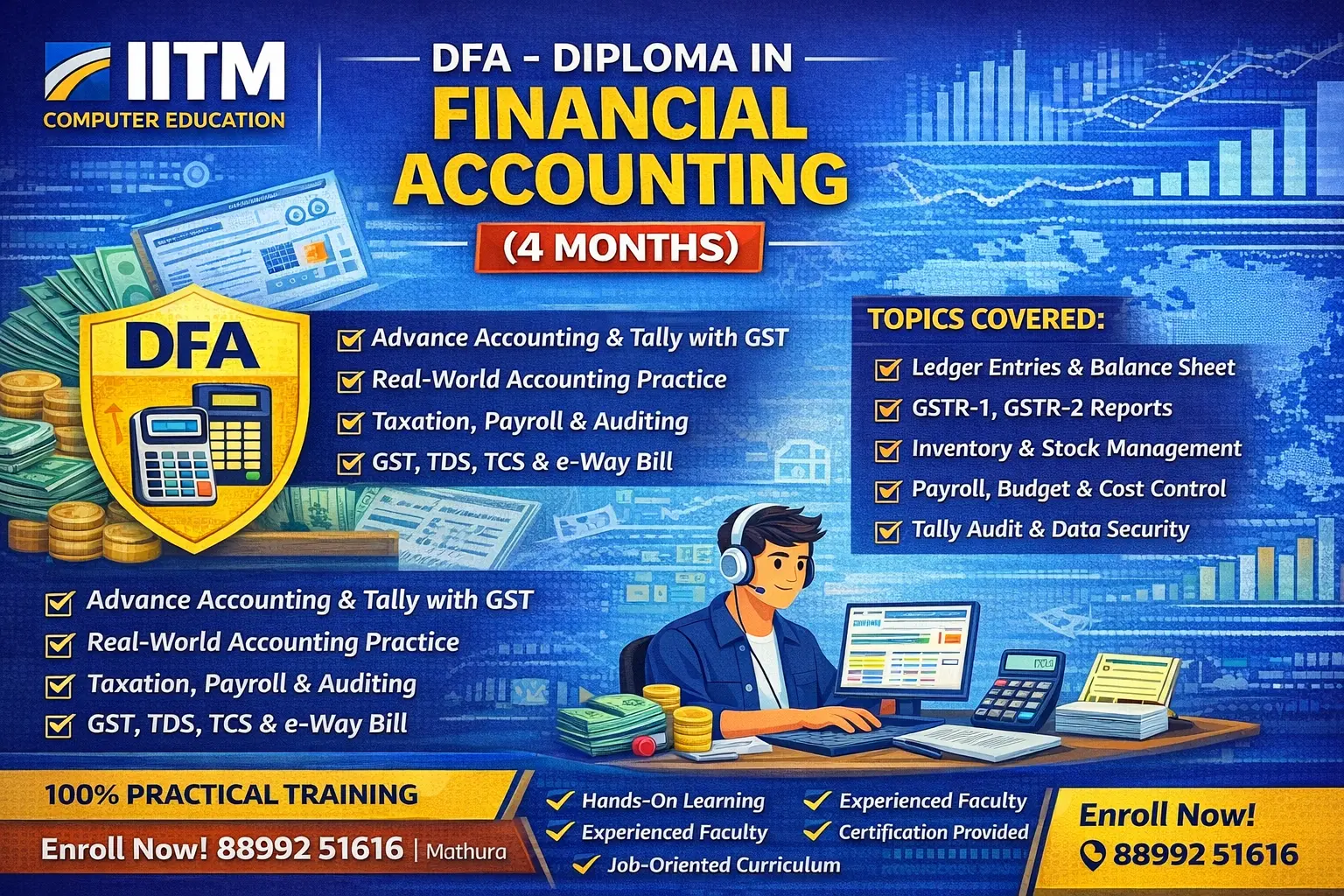 IITM Computer Education, Mathura, established in 2010, is one of the region’s most trusted and award-winning institutions for computer training and professional skill development. With a commitment to delivering quality education, industry-oriented training, and career-focused learning, IITM has empowered thousands of students to build successful careers in IT, accounting, designing, data analytics, and more.